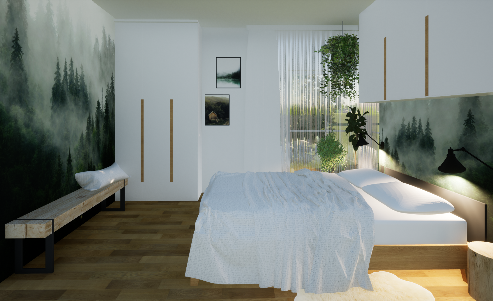 Miejsce: Warszawa Typ: Sypialnia SYPIALNIA FOREST Sypialnia, w której stworzyliśmy nie tylko strefę do odpoczynku, ale też niezliczoną ilość miejsca do przechowywania. Tapeta lasu, … More Sypialnia Forest »